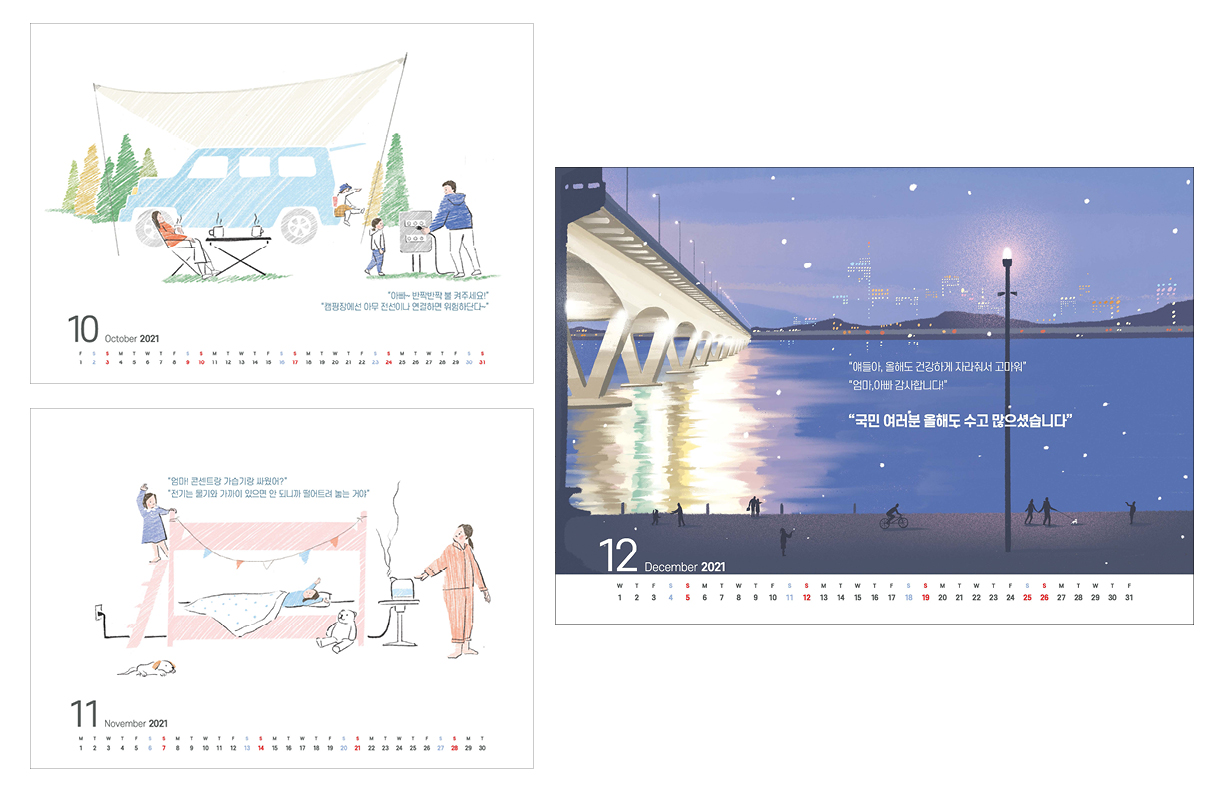 계절별 전기안전요령을 강조하여 시기에 맞는 요령들을 심플한 일러스트로 구성하였으며 심플한 카피로 설명한 달력.